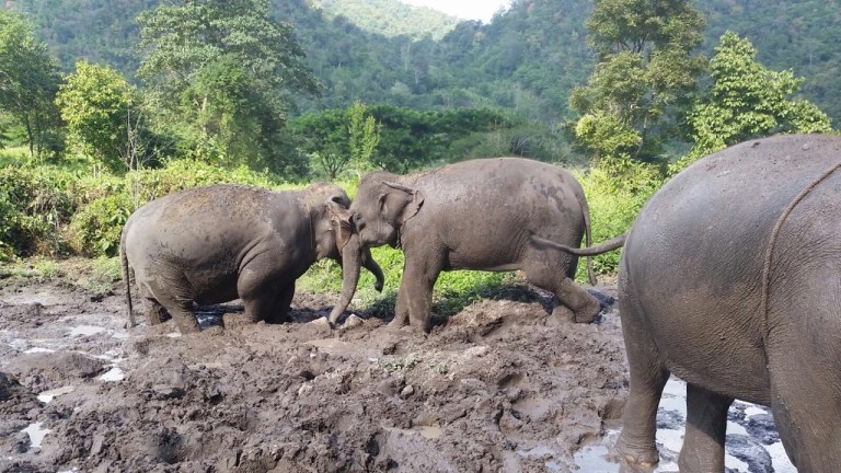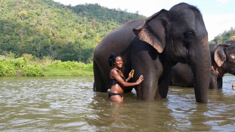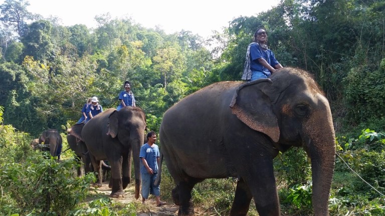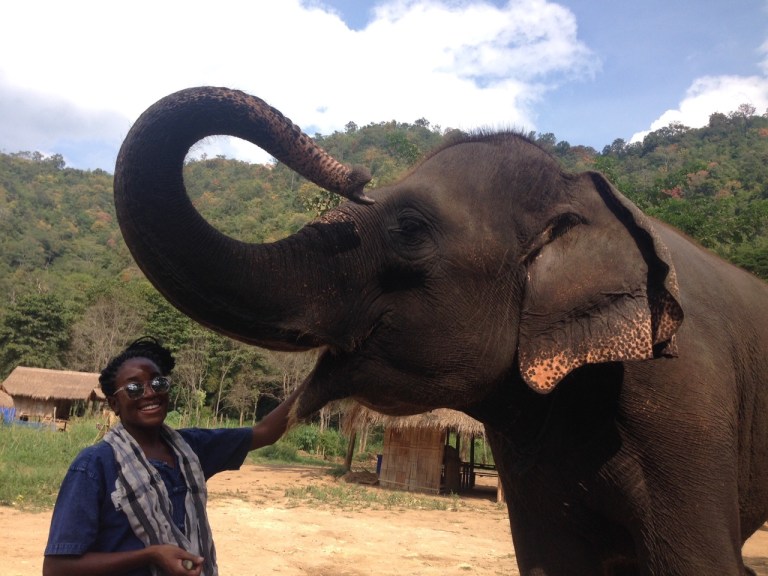 Outside of eating, drinking, bike riding and temples, another popular activity in Chiang Mai is elephant riding. We went to an elephant farm where we learned a ton about elephants. I don’t know when I last saw one in person, but these beasts are humongous and imposing. One wrong move, one misstep and they could crush you. Throughout the day we fed the elephants, learned commands (though, I question the authenticity of this as the elephants didn’t seem to understand a word of what I was saying [could’ve been my accent, but I doubt it]), and rode the elephants. After the ride, the elephants took a mud bath, which apparently feels like lotion on their dry skin. Afterwards we bathed them and fed them again. They look you right in the eye as you are doing so, which can be a little scary because you don’t know what they are thinking. They eat, poop, and pee a ton – as in quantity and frequency.
