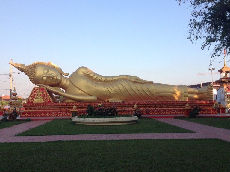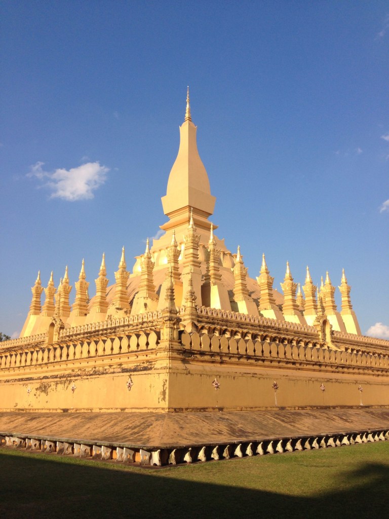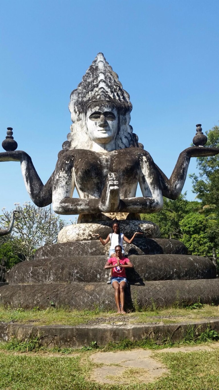 Aside from our hellish ride from Luang Prabang, Vientiane was actually pretty nice, even though other travelers and online reviewers said to skip it. It’s pretty small for a capital city, but that just makes it easier to get around, and the sun actually shines here (in contrast to Luang Prabang). We rented bicycles and saw the “monuments” such as Patuxai Arch (the Lao version of the Arc de Triumph), Phra Tha Luang (the nation’s most sacred religious monument), Buddha Park (a park filled with oddly-shaped Hindu and Buddhist statues), and the COPE Center (an organization that provides prosthetic limbs to Laotians). Given that they were colonized by the French, some find it ironic that the Laotians would build a monument meant to mirror the French historic site, but I think its pretty common for colonies to model their cities off those of their colonizers.